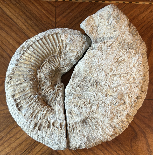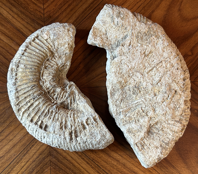 Cette remarquable ammonite fossilisée, présentée en deux parties complémentaires, est une pièce d’exception qui témoigne de plus de cent cinquante millions d’années d’histoire.