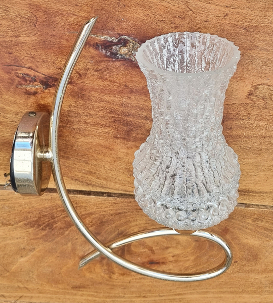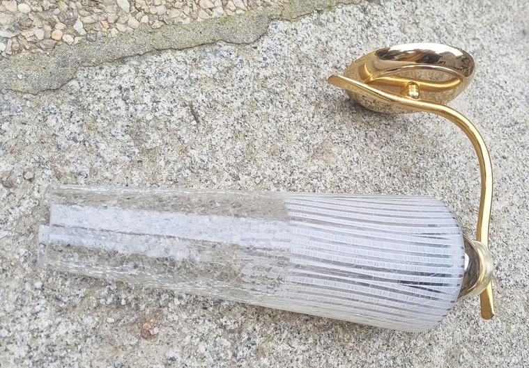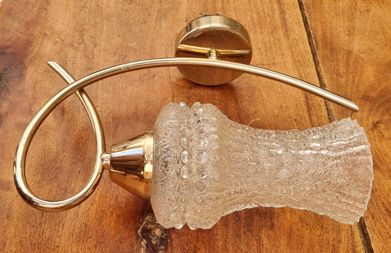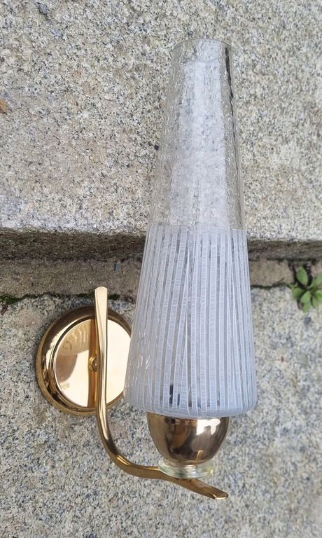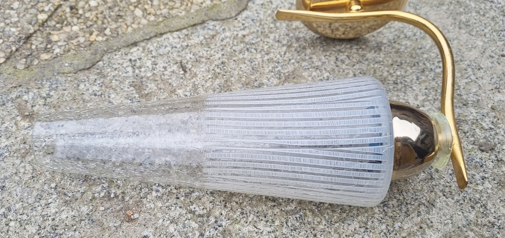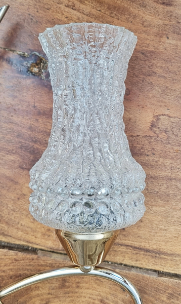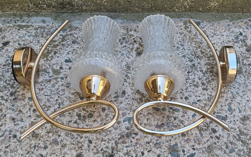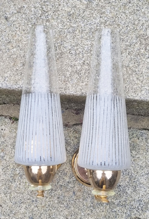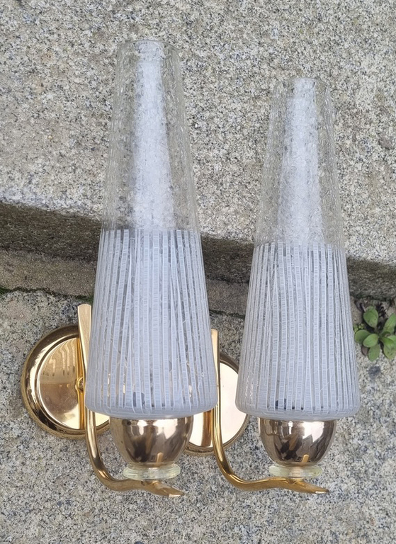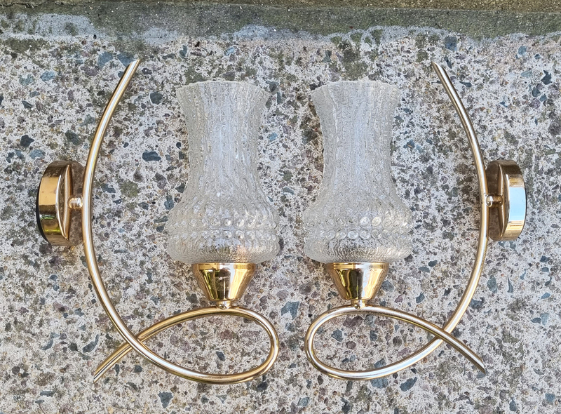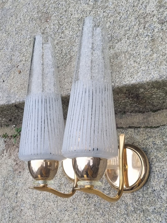 Paire d’appliques murales vintage en laiton et verre texturé – années 50, style Mid-Century