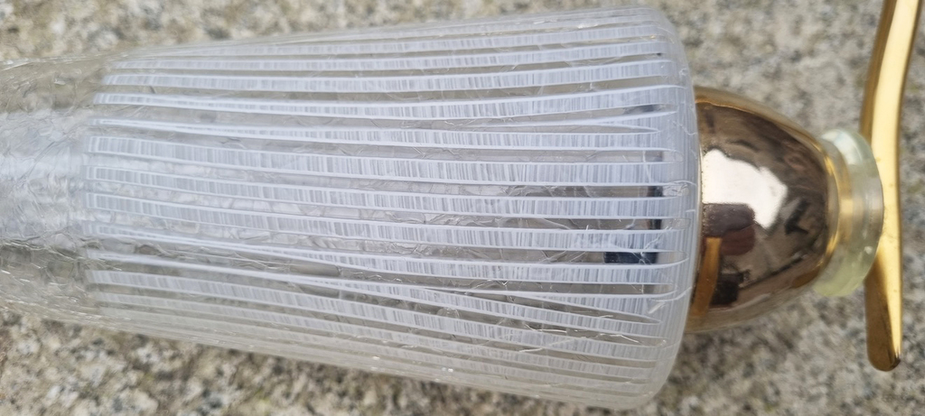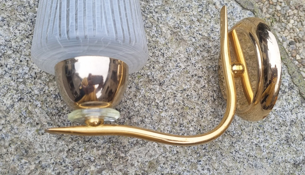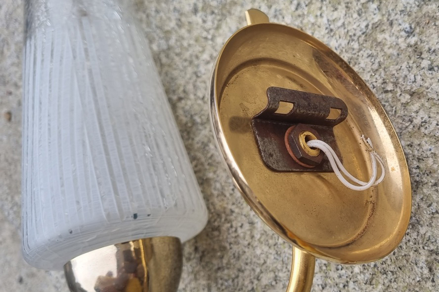 On remarque sur le support de l'une d'entre elles une zone plus brillante qui ne gâche rien à la beauté de ces appliques représentatives des maisons de luminaires de luxe des années 50.