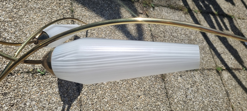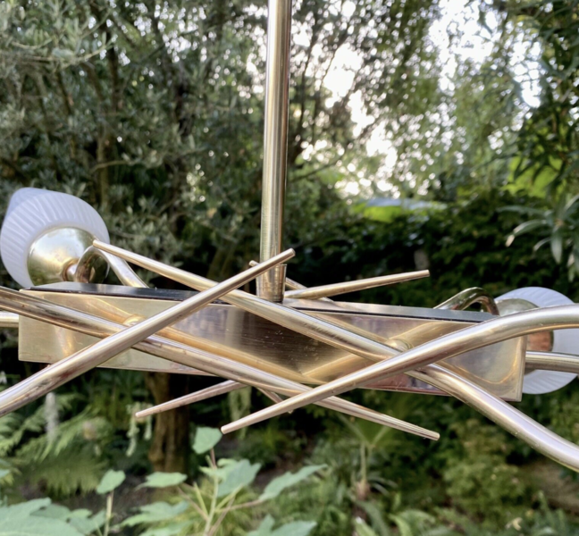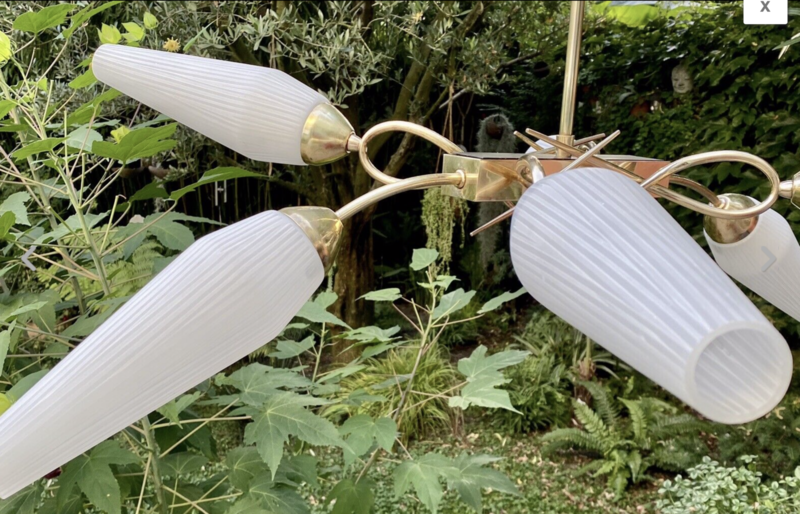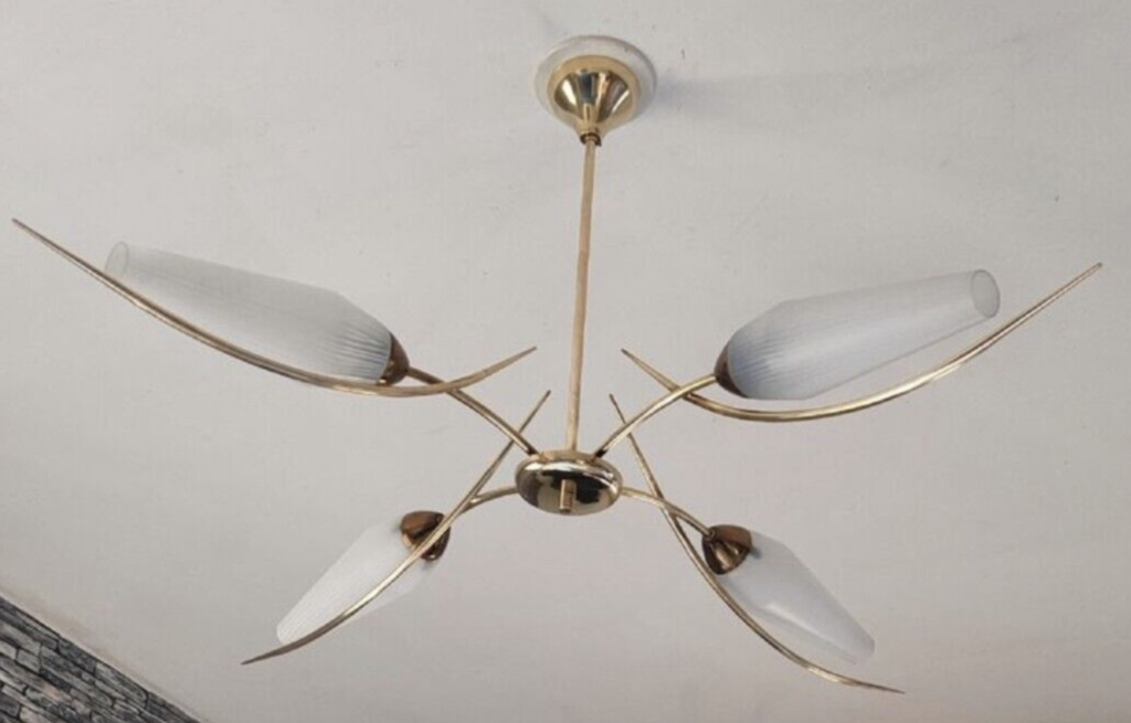 Suspension vintage à 4 bras en laiton et verre opalin – Années 1950 | L’éclat du design italien mid-century