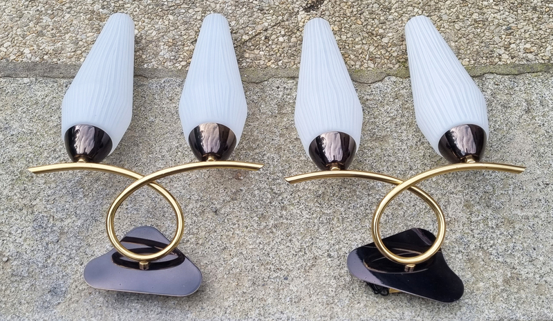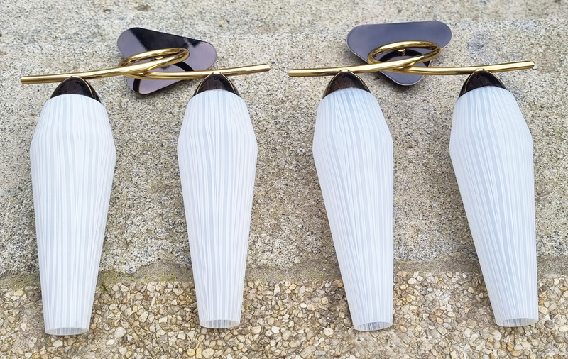 Paire d’appliques vintage en laiton et verre opalin – Années 1950 | Moderniste, Élégance sculpturale mid-century