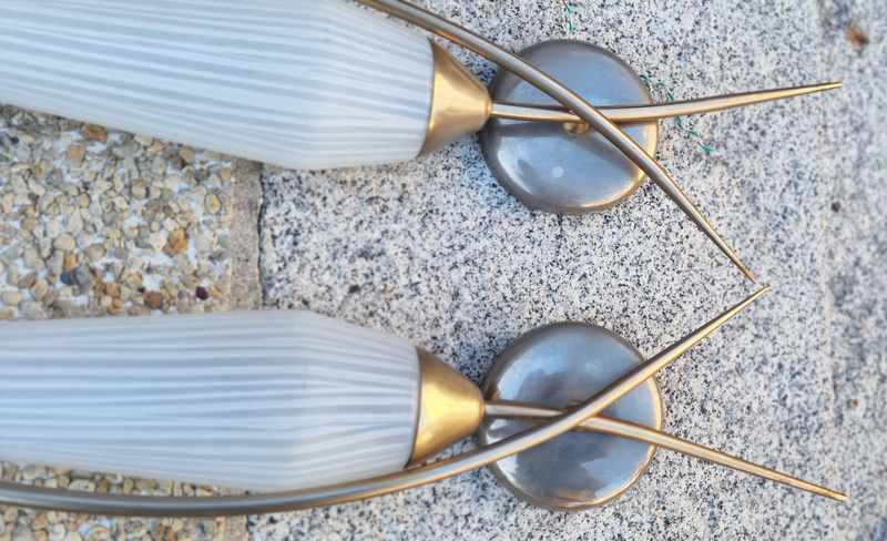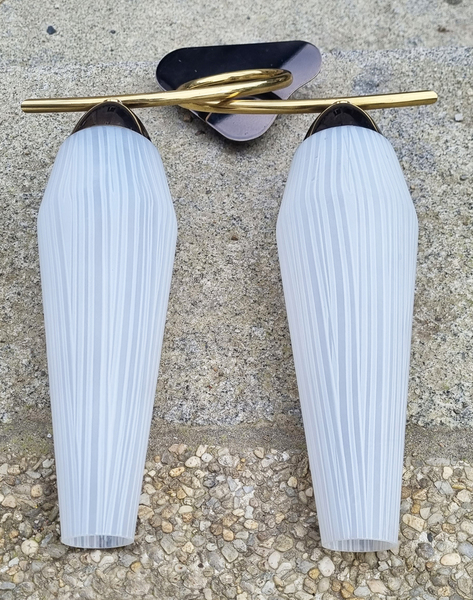 Paire d’appliques vintage en laiton et verre opalin – Années 1950 | Élégance italienne mid-century