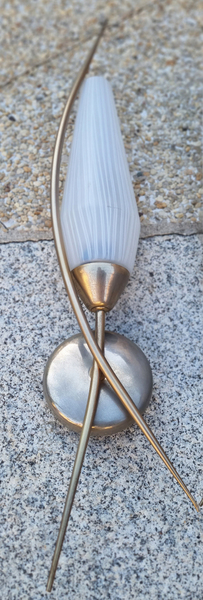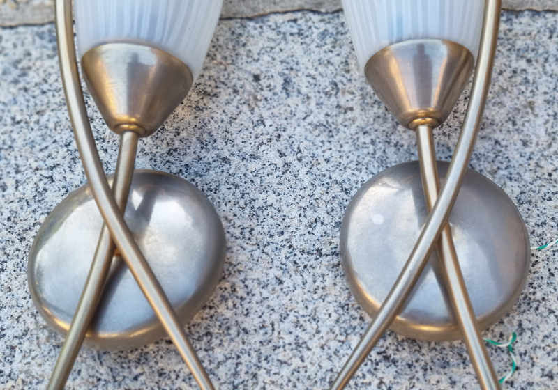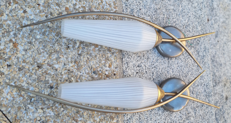 Paire d’appliques vintage en métal brossé et verre opalin – Années 1950 | Lignes sculpturales mid-century