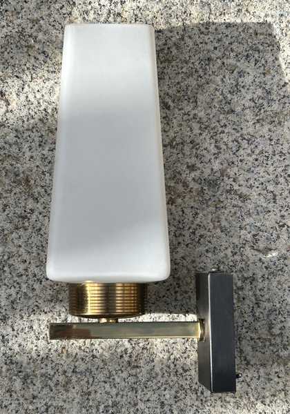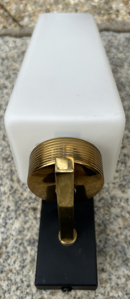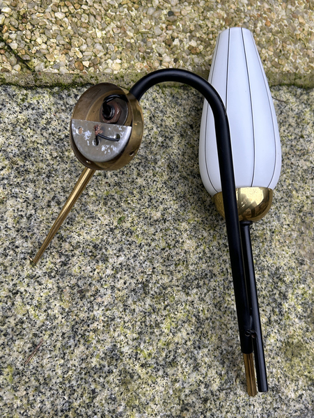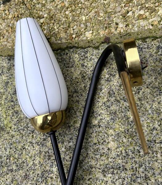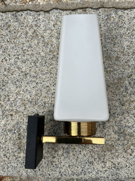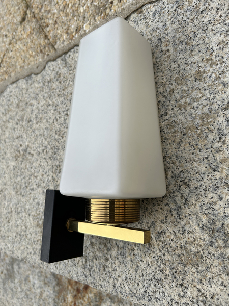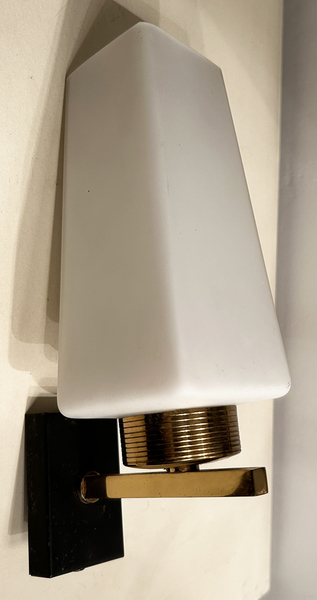 Applique design en laiton doré et opaline, éditée par la maison ARLUS dans les années 50.