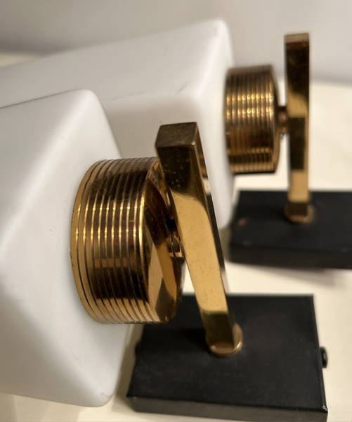 Elles présentent de légères traces d'usage, rien qui ne rompt le charme de cette sublime paire d'appliques moderne et design à la fois. Elles ont traversé les années sans se démoder.