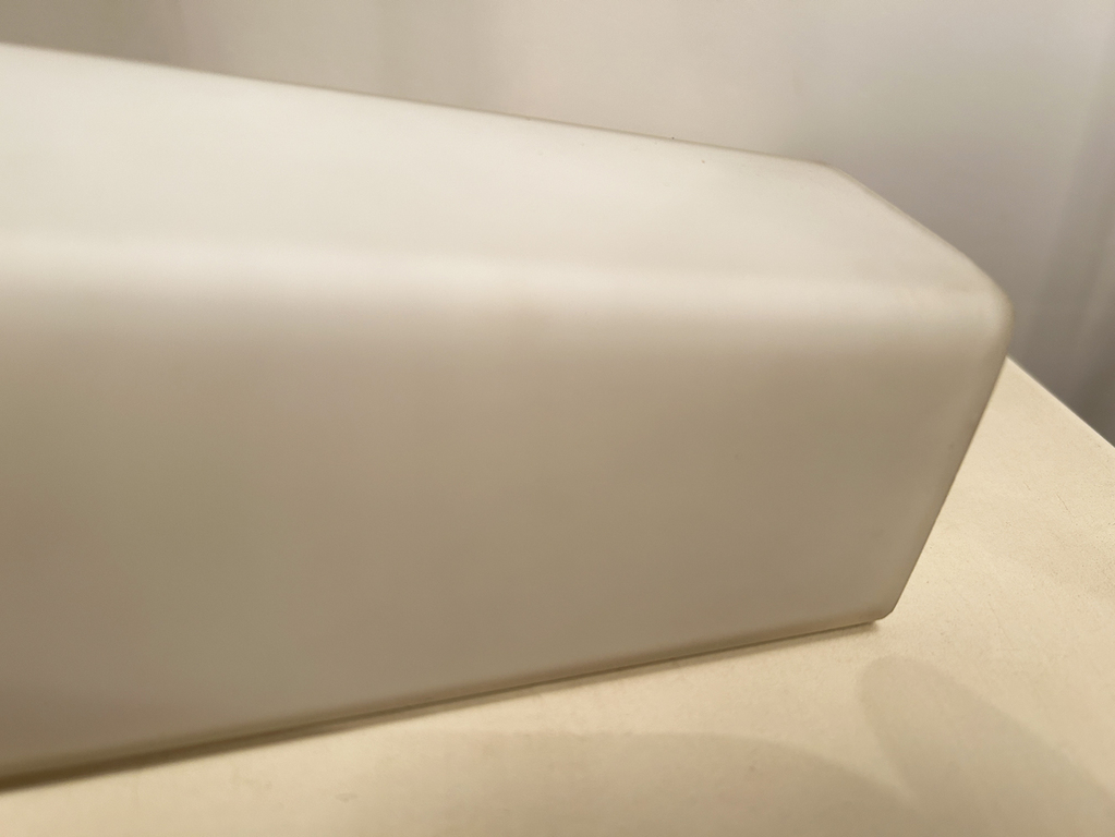 Les réflecteurs sont en verre dépolis à l'acide et strié (technique employée à des fins décoratives en miroiterie pour donner un aspect dépoli, régulier ou non), ce qui produit un bel très bel effet et une lumière douce.