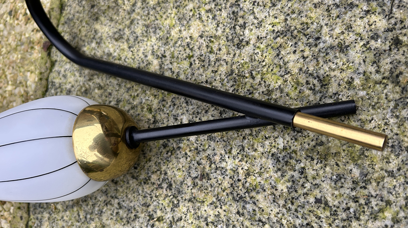 Lustre assymétrique Arlus stilnovo en laiton et acier habillé de 3 opalines.