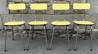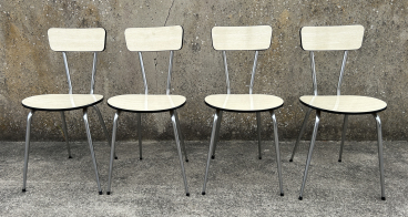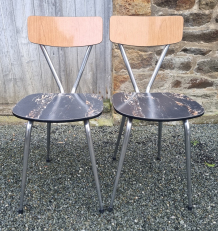 Datant du tout début des années 50, elles sont les aieulles des chaises formica plus classique que nous connaissons d'ordinaire.