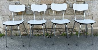 4 chaises aux formes gracieuses. Modèle élégant et peu courant des années 50. L'armature est renforcée bien que leur ligne semble légère.