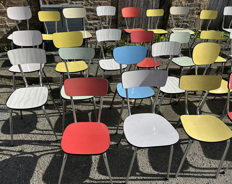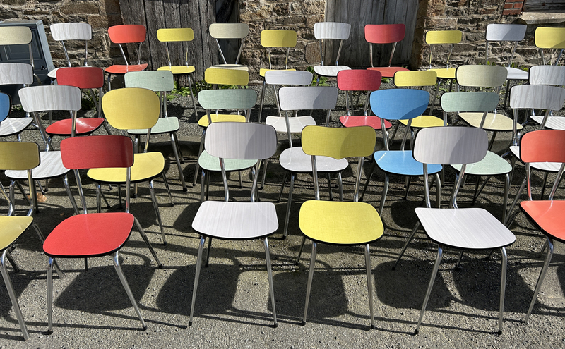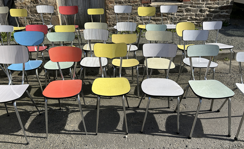 Lot de 50 chaises formica dépareillées vintage, années 60 / 70