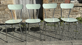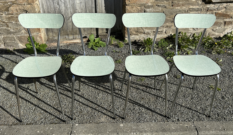 RARE ensemble de 4 chaises VOLO en formica vert des années 50,