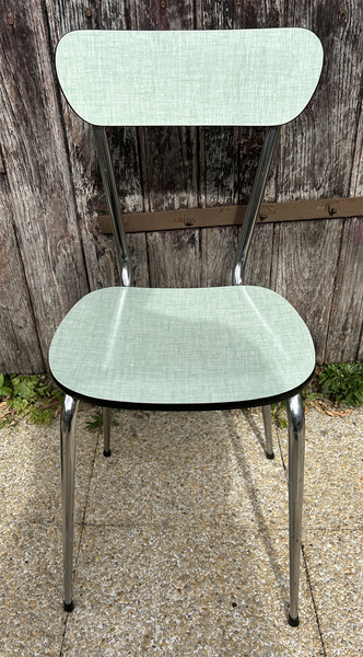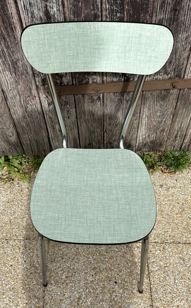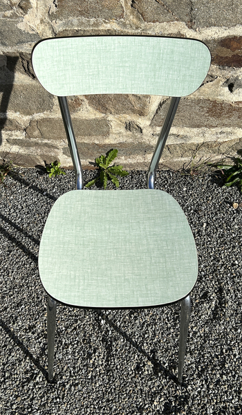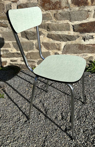 Ensemble de 5 chaises formica vert amande, vintage, années 70