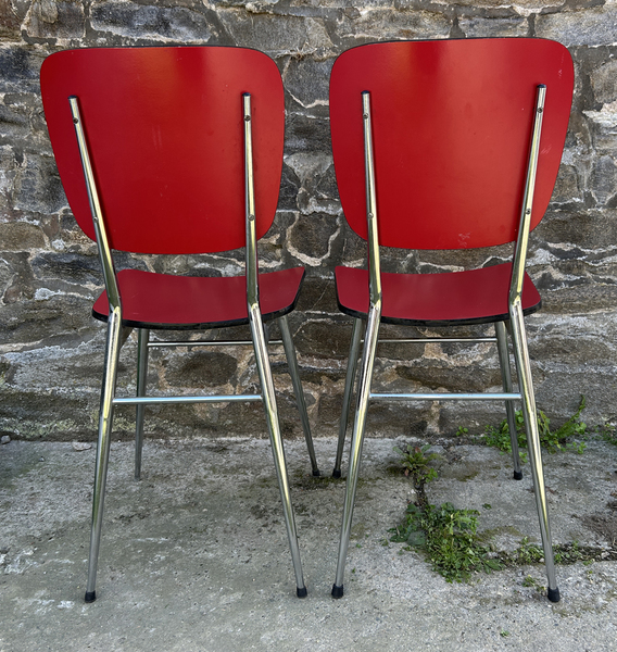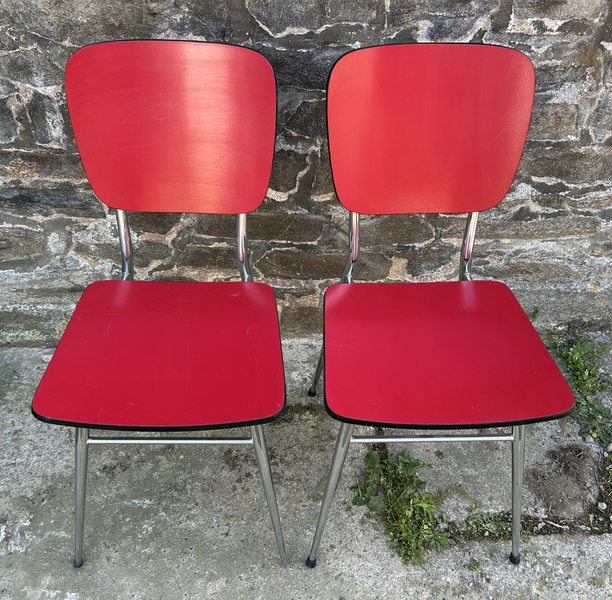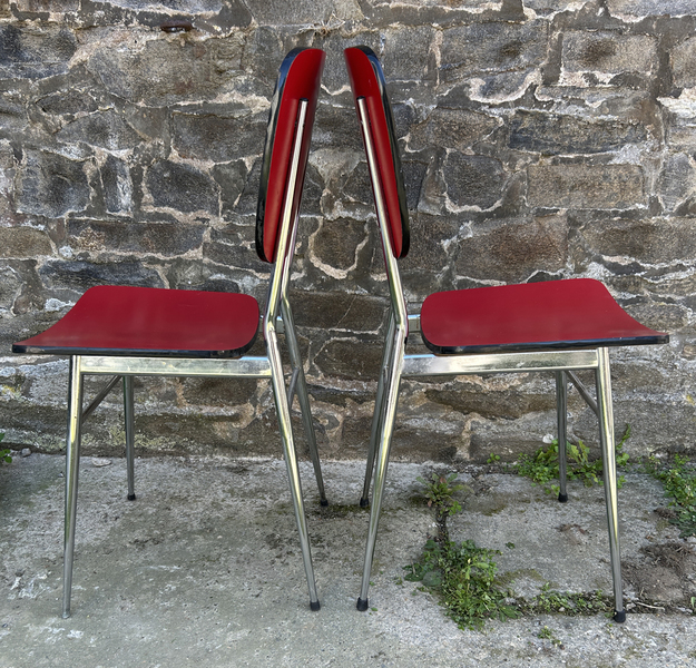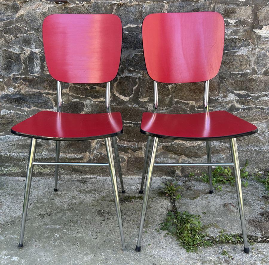 Paire de chaises formica rouge, vintage, design moderniste, années 70