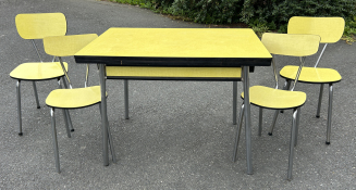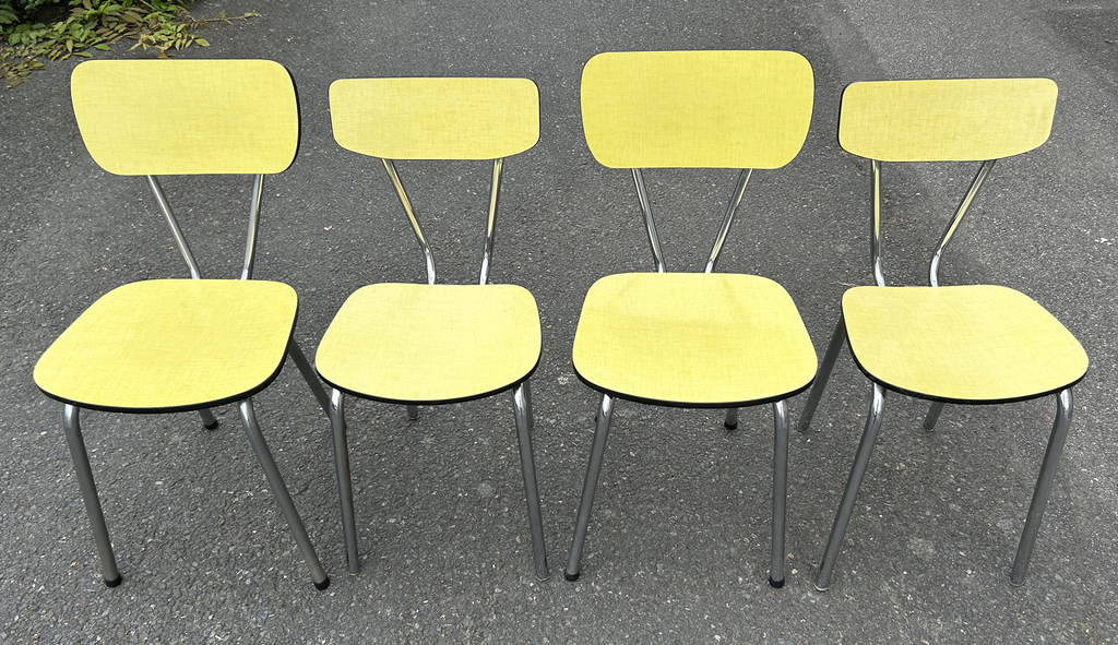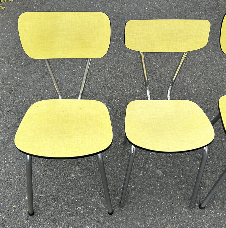 4 chaises formica jaune pâle assorties pourront rejoindre ce bel ensemble.