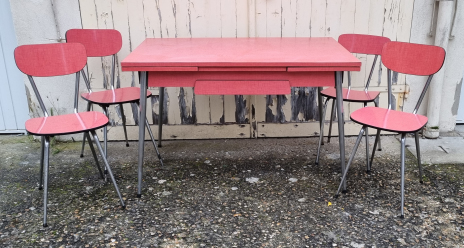 Ensemble table formica rouge et ses 4 chaises, vintage, années 60