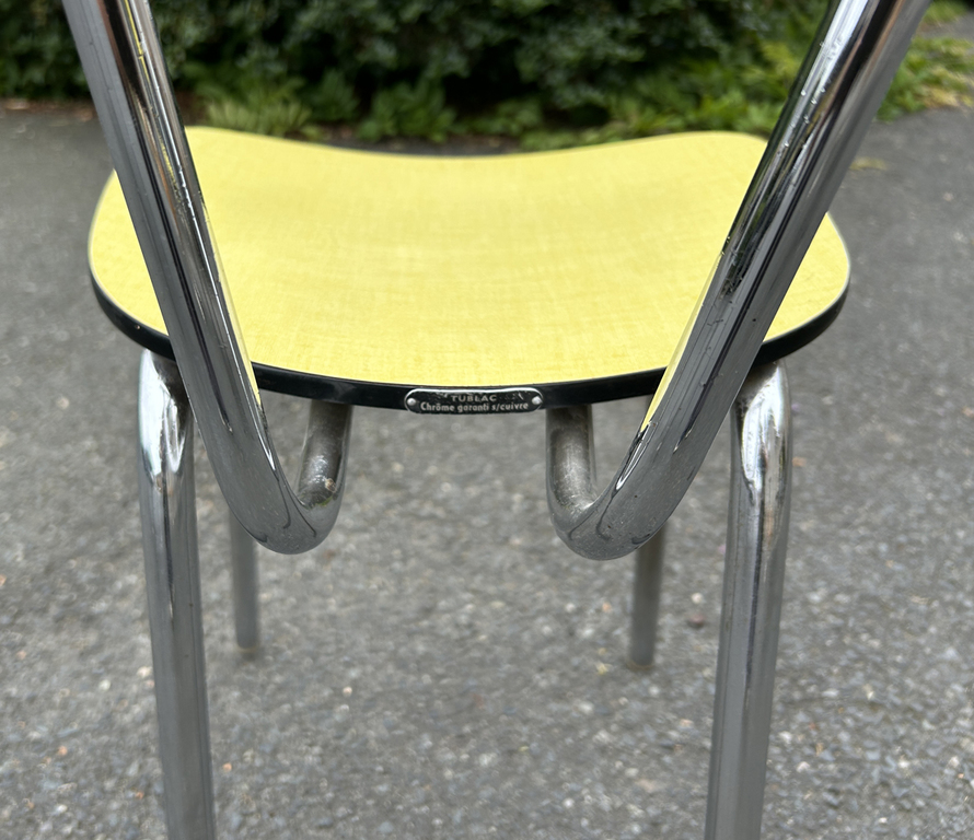 Exceptionnel ensemble en formica jaune anis, TUBLAC, vintage, années 60