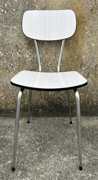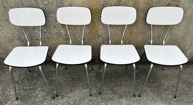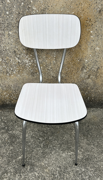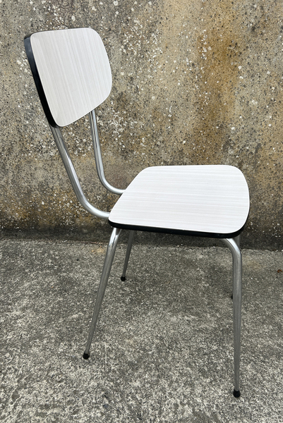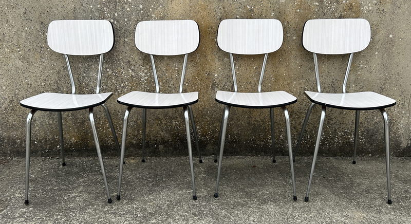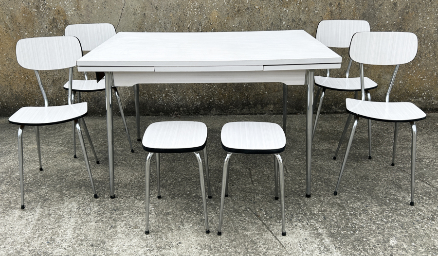 Table formica blanche, 5 chaises formica blanches vintage, années 70