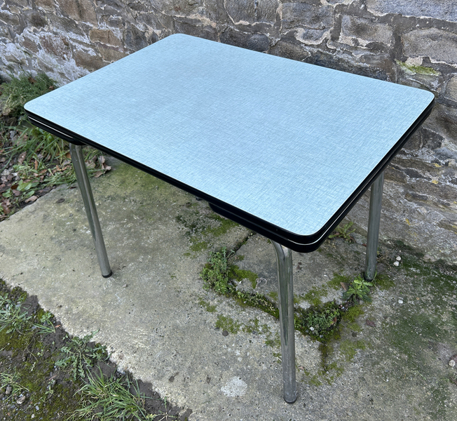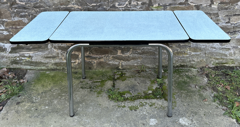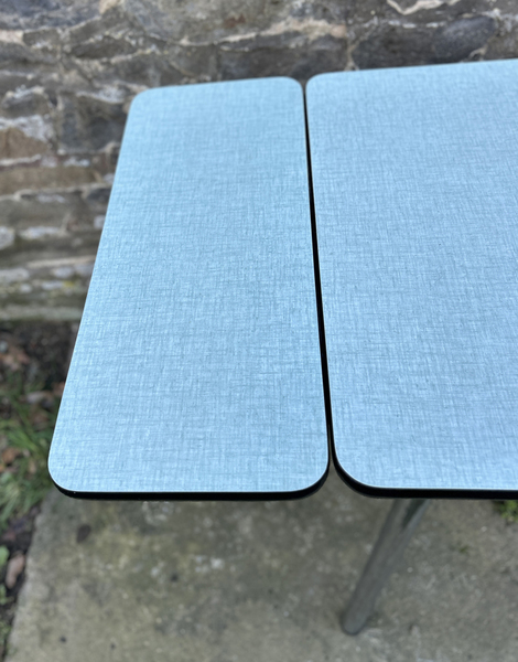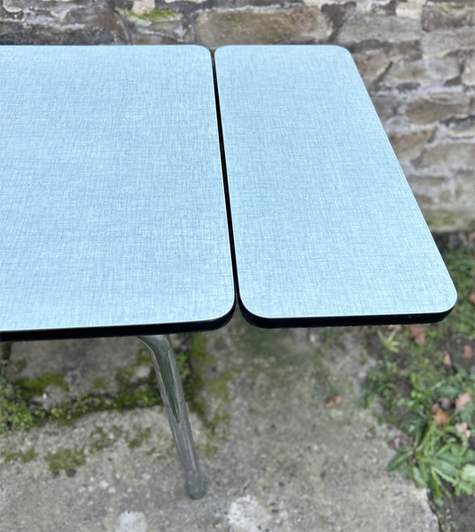 Magnifique table en formica bleu vif, au design sympa, elle a beaucoup d'allure.