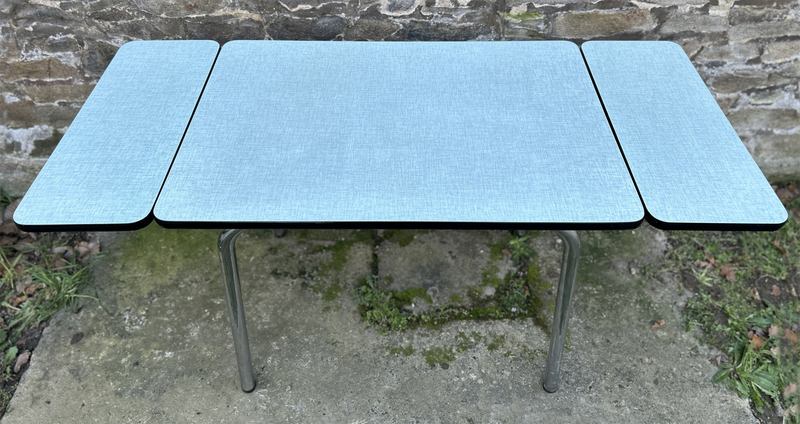 Table et chaises formica bleu et gris, MDJ, vintage, années 60