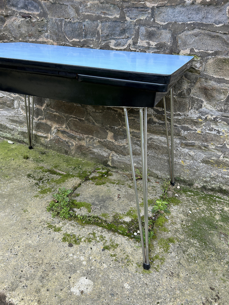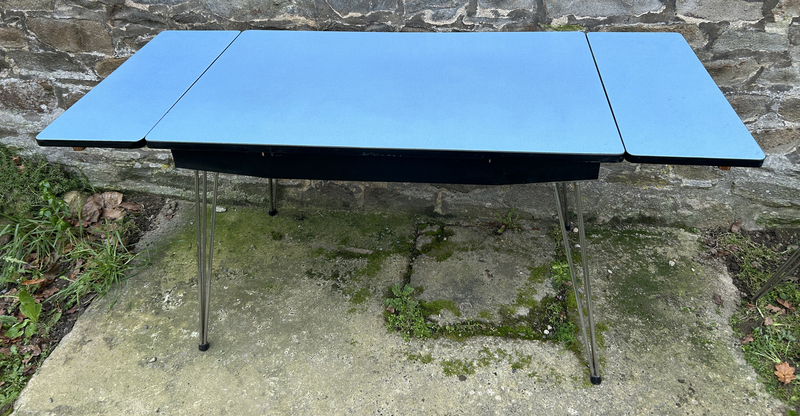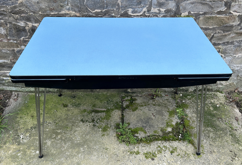 Bel ensemble en formica bleu à pieds eiffel vintage des années 60.