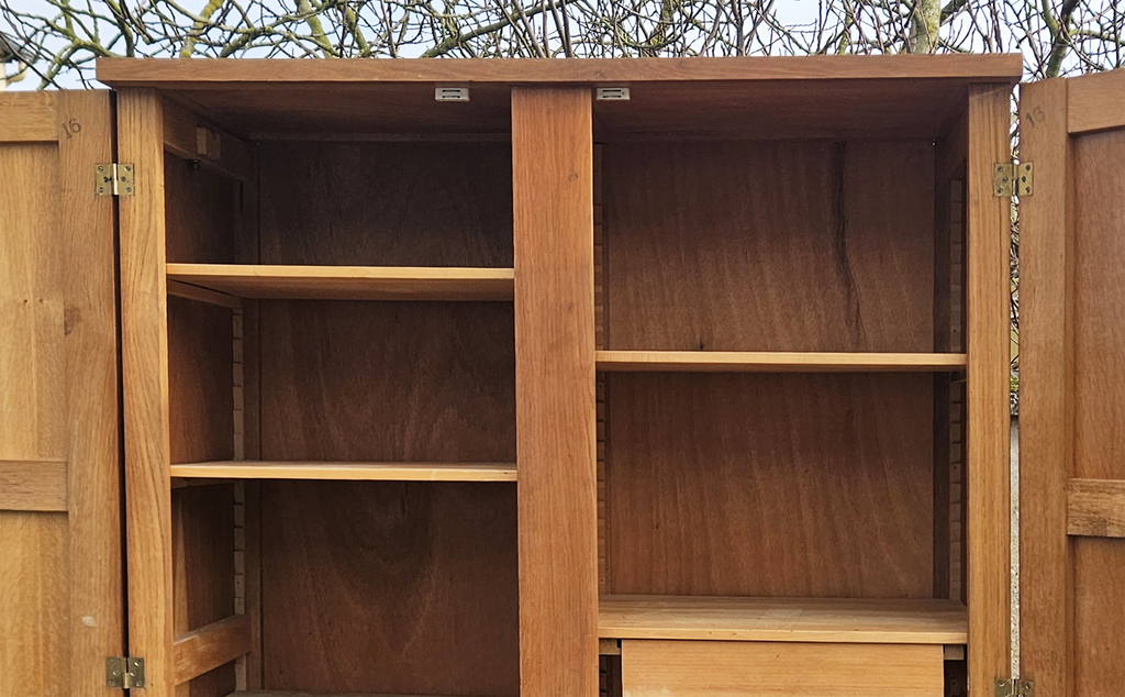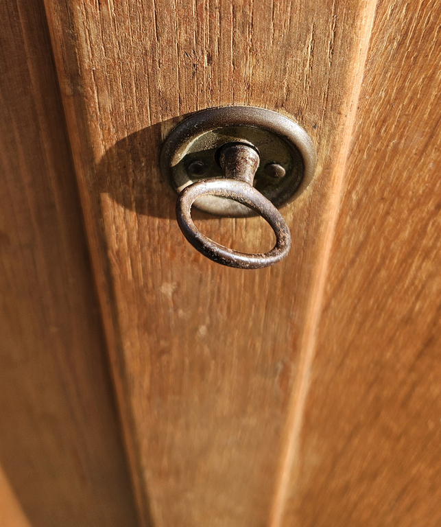Cette armoire a de toute évidence de nombreuses histoires à raconter tant les marques du temps impriment encore ses portes et sa structure.