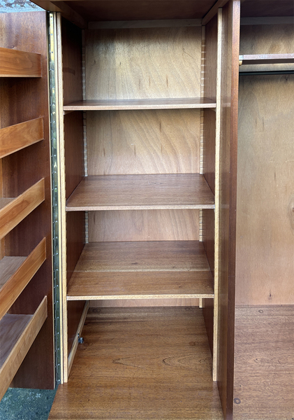 Belle armoire double penderie et étagères en palissandre en très bon état de conservation.