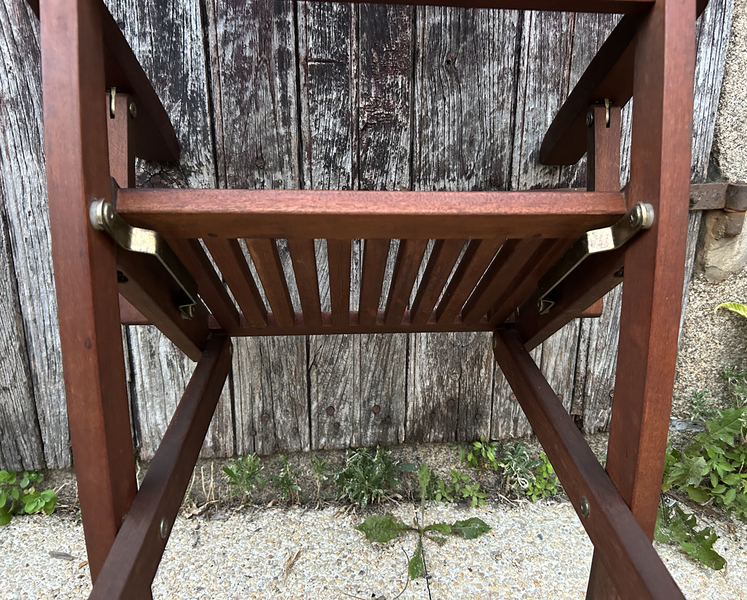 Facile à plier, à porter, à stocker, ces chaises, arrières petites filles de la fameuse "Simplex" dont le brevet date de 1889 peuvent être utilisées comme chaise de bistrot ou de jardin.