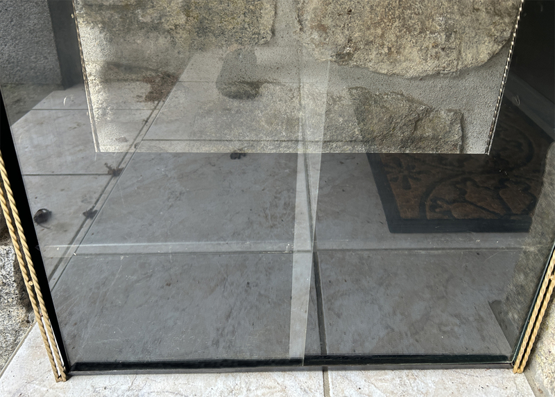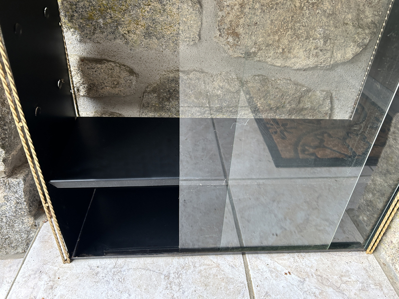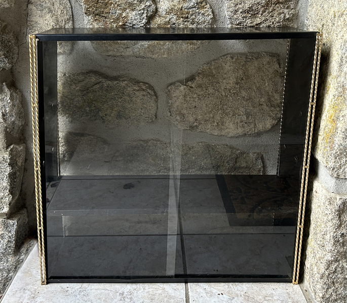 Tablette de salle de bain en verre fumé, fixations cuivre, vintage