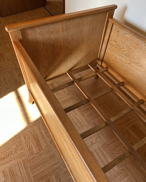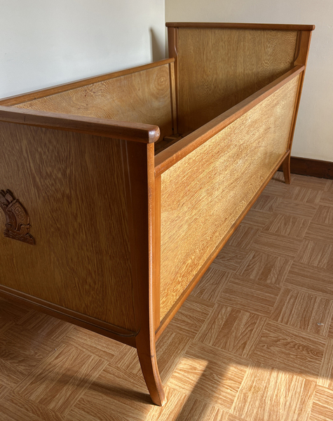 Le lit est en bon état général avec de simples traces d'usage classiques pour un meuble de plus de 60 ans.