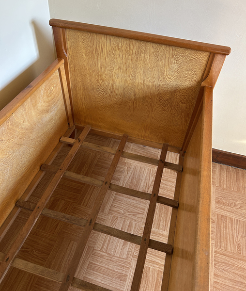Lit ado, adulte, daybed en bois blond, vintage, années 50