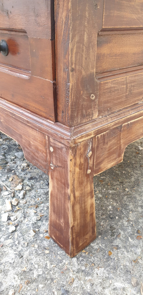 Ses pieds sont stylisés. Son tiroir est doté d'un bouton en bois et sa façade est sculpté lui apporte un charme fou.