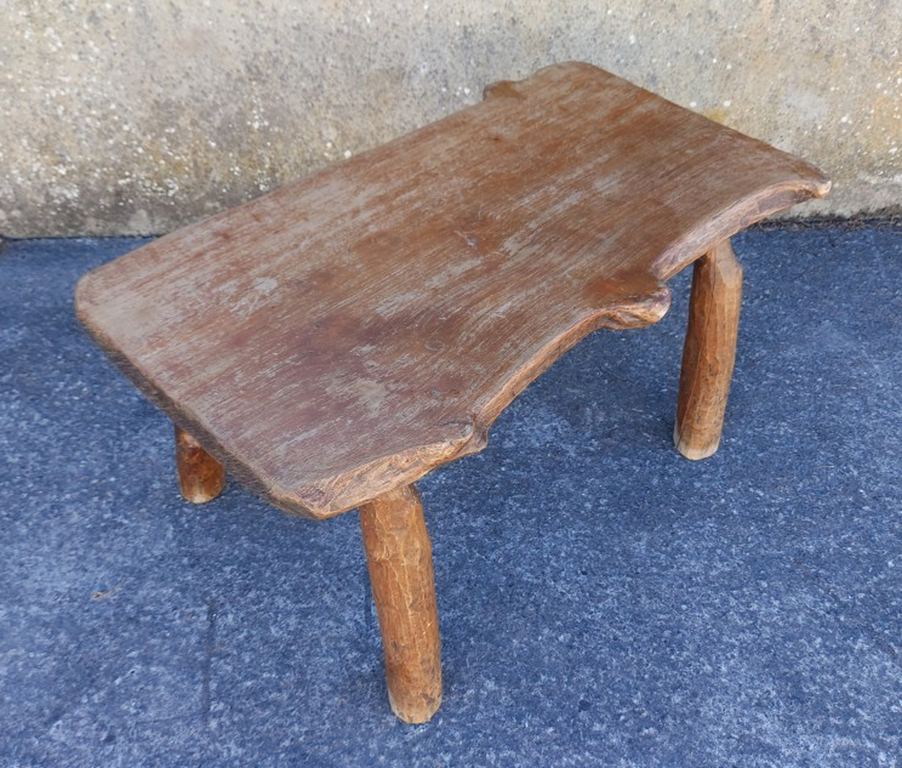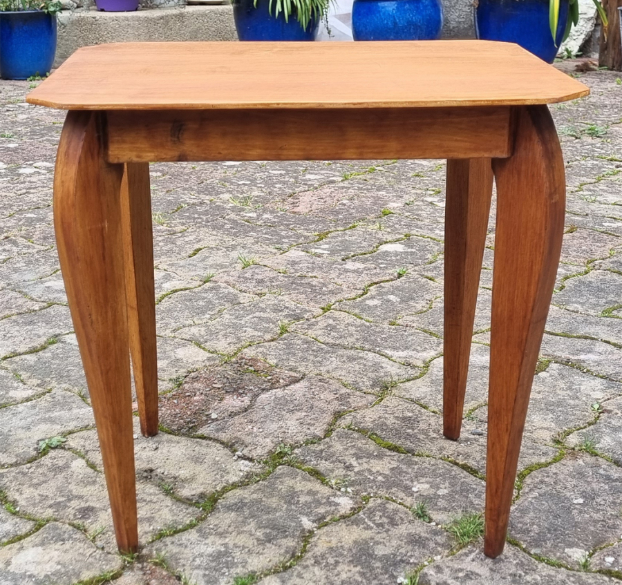 Charmante petite table réalisée de façon artisanale, en chêne reposant sur 4 pieds galbés et stylisés.