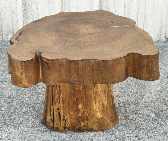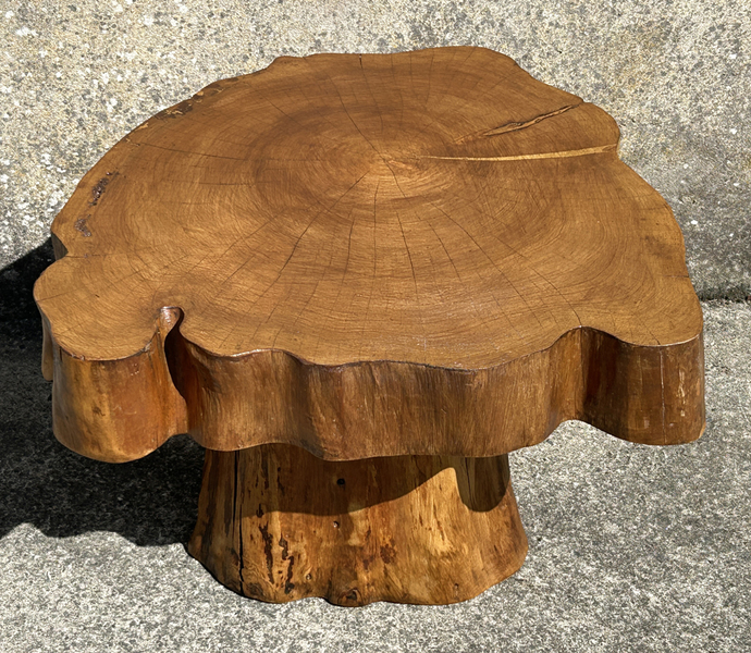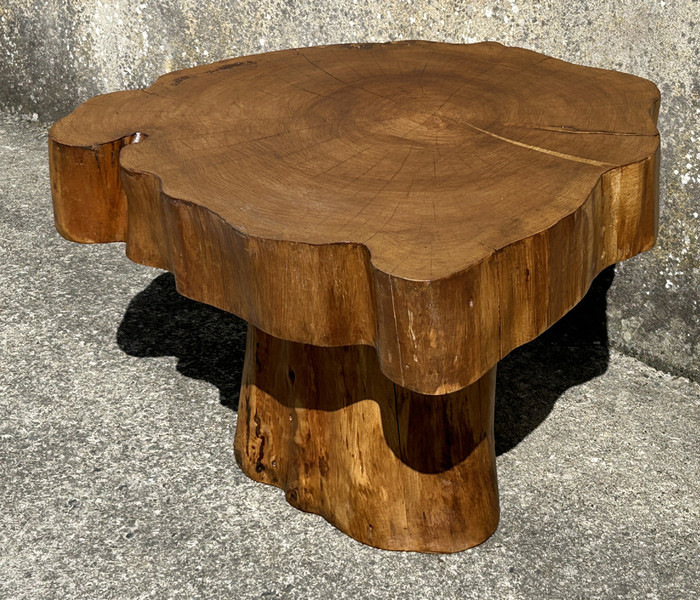 Table basse brutaliste chêne massif, tree trunk