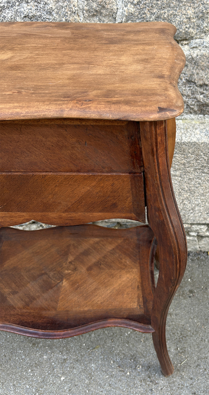 Le tiroir du haut est décoratif puisque l'accès se fait en soulevant le plateau. Ce petit meuble peut trouver sa place aisément dans un salon comme desserte d'appoint / bout de canapé, ou dans une chambre comme chevet et y ranger bijoux et autres trésors.