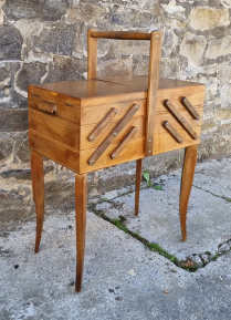 Elles reviennent en force ces dernières années, les jolies travailleuses vintage de nos grands mères. Idéales pour ranger de petits objets, bien évidemment votre nécessaire à couture mais pas que, elle peut aussi servir de boîte à bijoux, tout est possible...