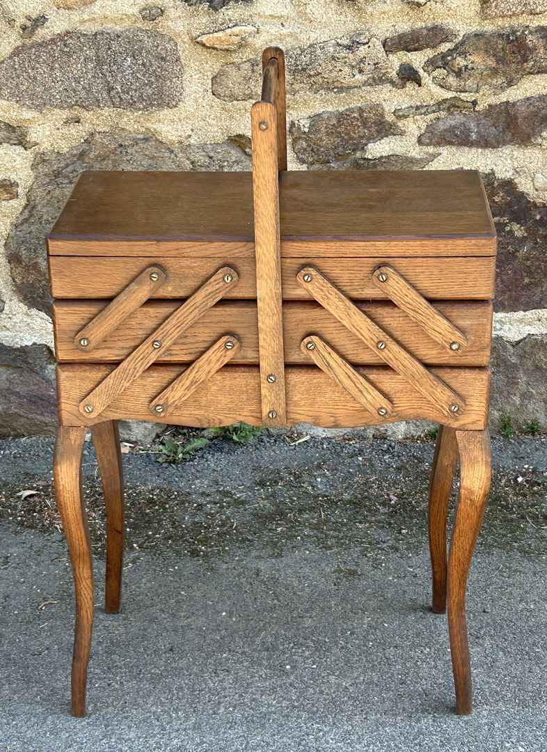 Travailleuse sur pieds, boite à ouvrage, vintage, années 60