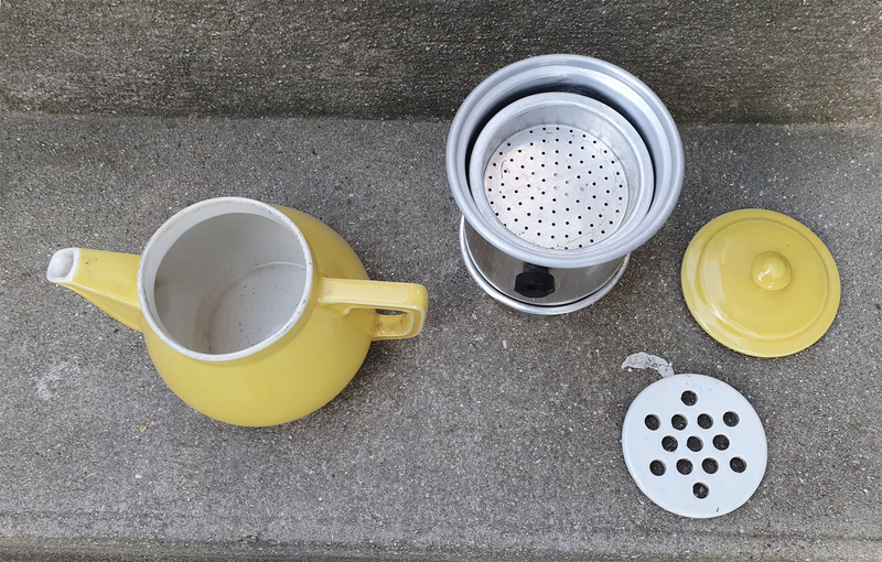 C'est une charmante cafetière deux dans un : vous pouvez préparer votre café et ensuite reporter le couvercle sur le pot pour servir.