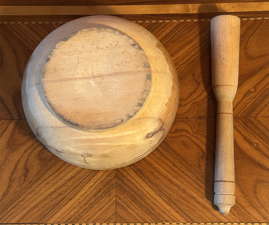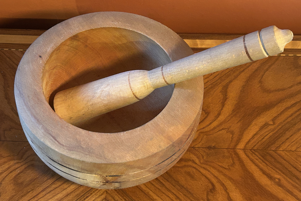 Probablement fin XIXe–milieu XXe siècle, cet objet peut servir à un usage décoratif ou fonctionnel en cuisine pour concasser épices et herbes.