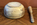 Pot en porcelaine blanche, couvercle en bois et fraise en porcelaine également...
