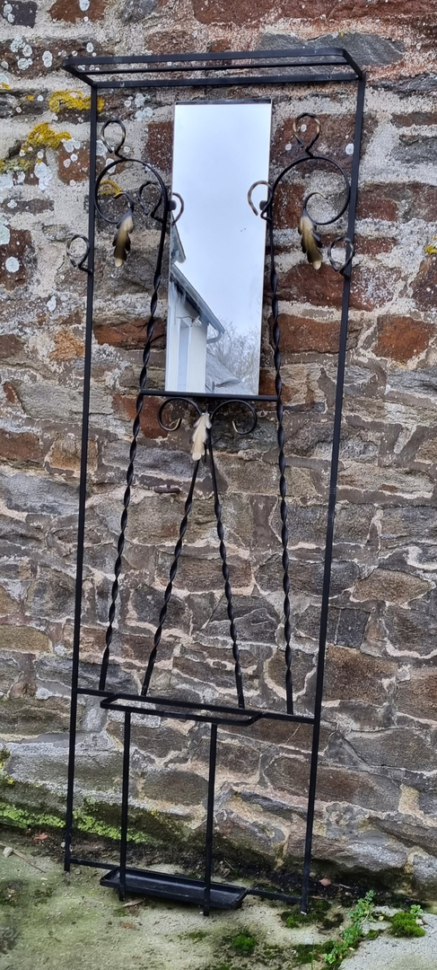 Il est composé de 4 patères, d'un miroir central, d'un porte parapluie et d'un porte chapeaux.