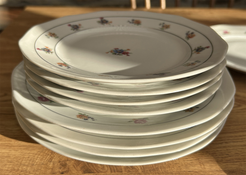 Ensemble de 6 jolies assiettes du Berry plates et 6 petites assiettes à fleurs.