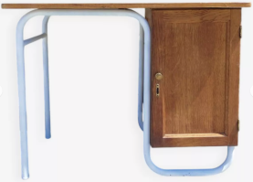 A l'usage des adultes comme des enfants ou des adolescents. Il est composé d'un plateau en bois et d'un caisson en chêne, une porte contenant une tablette intérieure.
