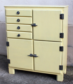 Il est composé de 4 tiroirs et de deux placards. Ce joli meuble de métier tiendra bien sa place dans une cuisine en guise de placard ou de garde manger mais aussi dans une salle à manger, une chambre...