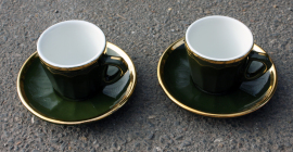 Tasses et sous tasses vert et or de Bistrot, vintage
