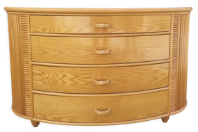 Commode aux formes rondes et tonalités chaleureuses dans des tons blonds dorés.