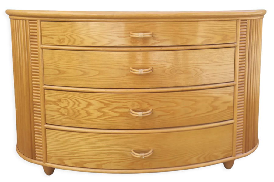 Très belle commode en bois et rotin.
